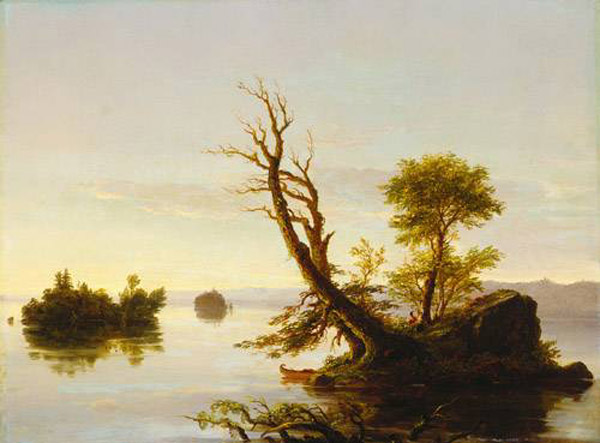 Like many other artists of his generation, Cole sought to express the spiritual in the actual. Here, a small lake, a cloudless sky, a fallen tree, and a lone Indian evoke the peace and tranquility of the American wilderness.